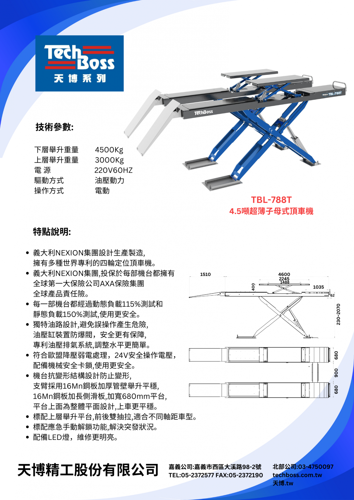 天博4.5噸超薄子母式頂車機